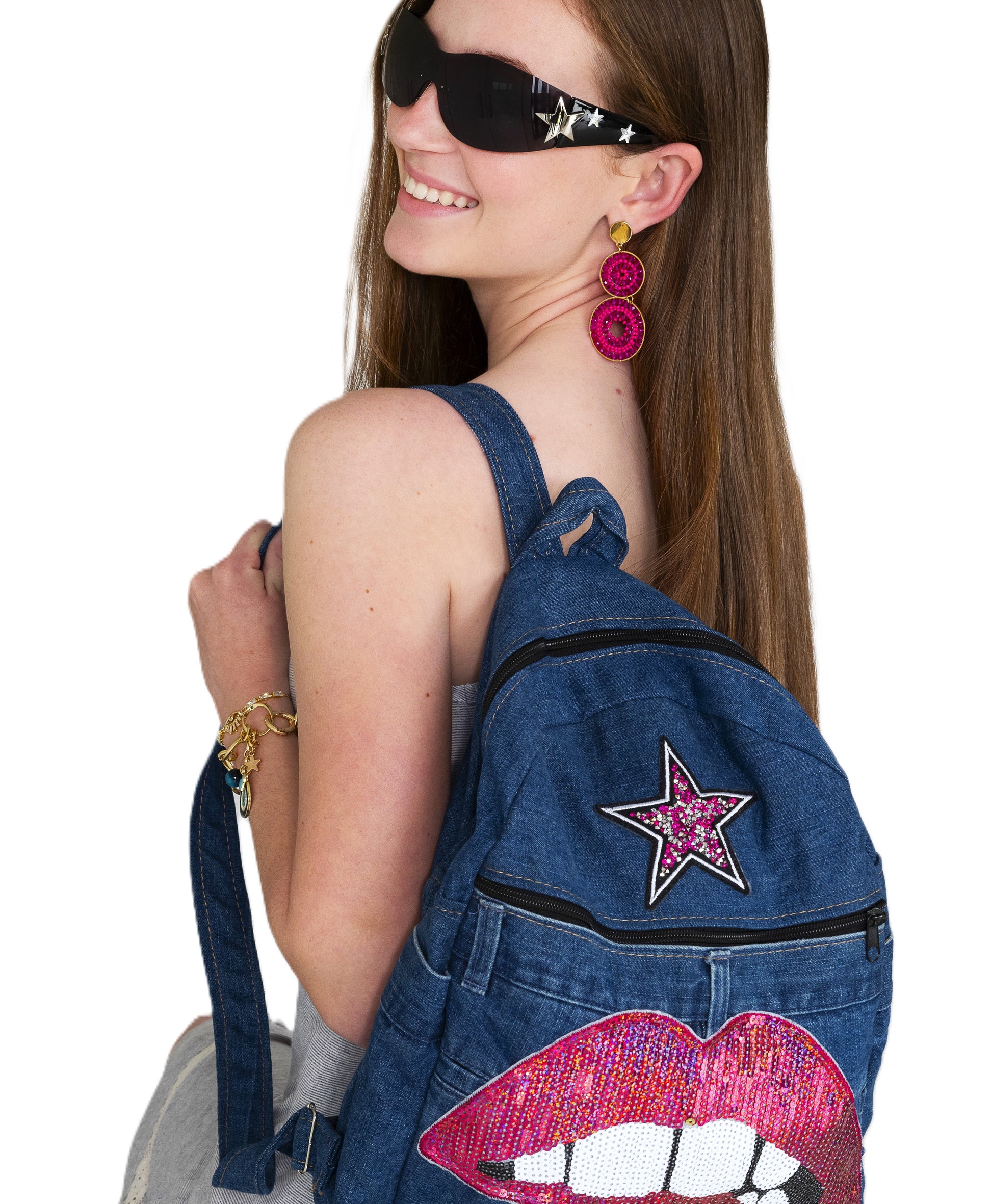 Fuschia and Purple Double Drop Stainless Steel Earrings