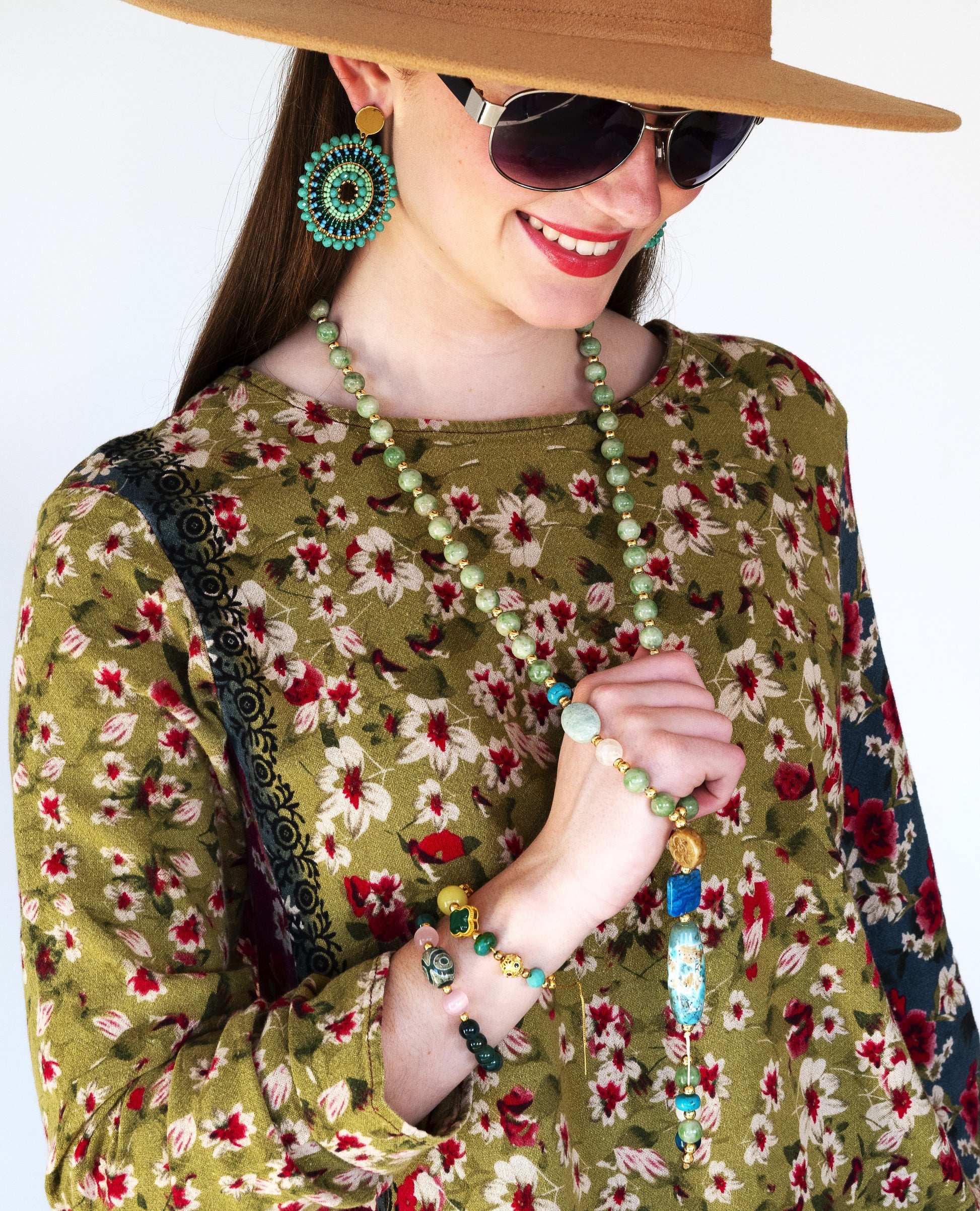 Please note that as this necklace contains gold coated metal spacers, direct contact with solvents, deodorant, perfume/aftershave, hairspray, chemicals, and water may tarnish the product.