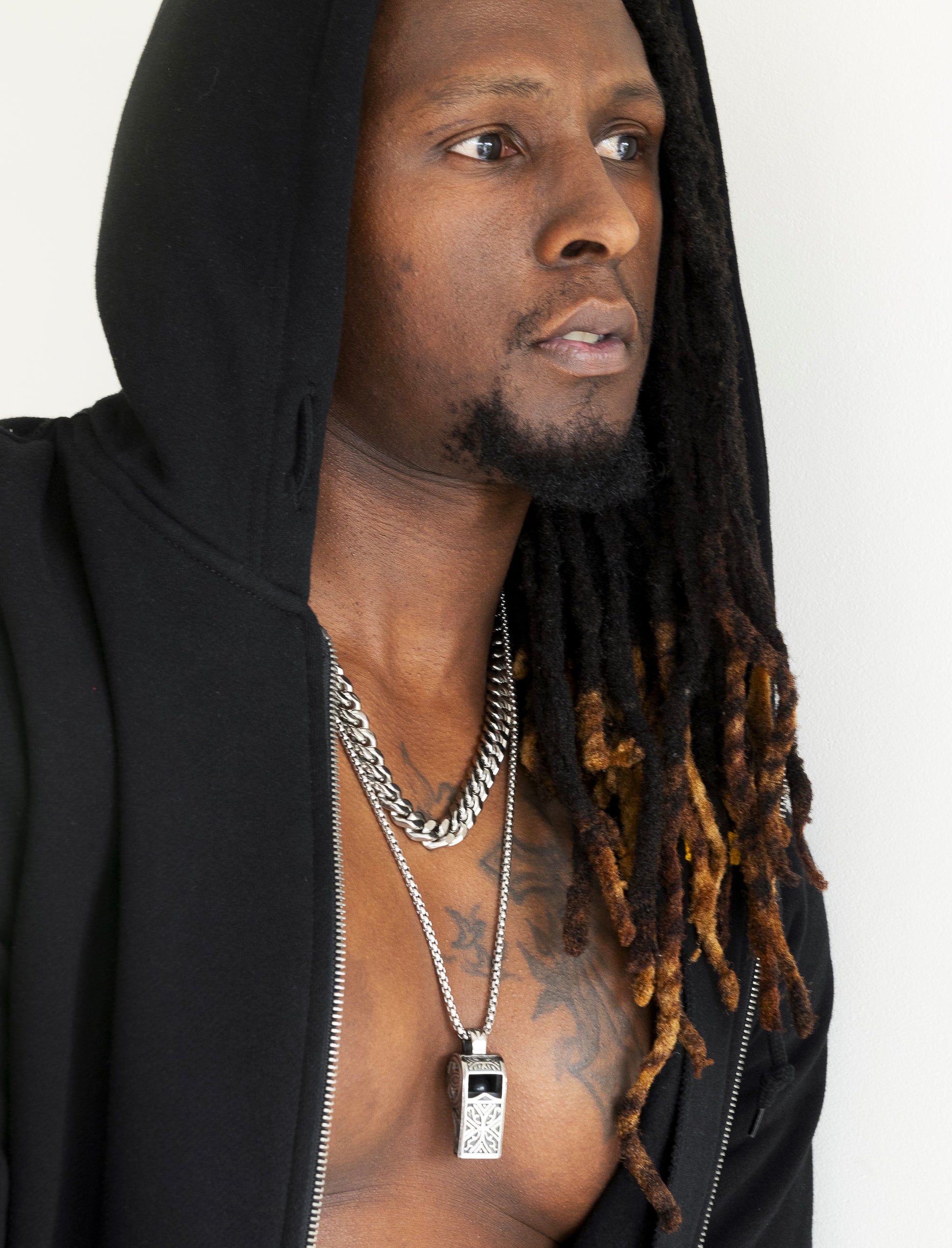 Ornate Whistle Mens Stainless Steel Necklace