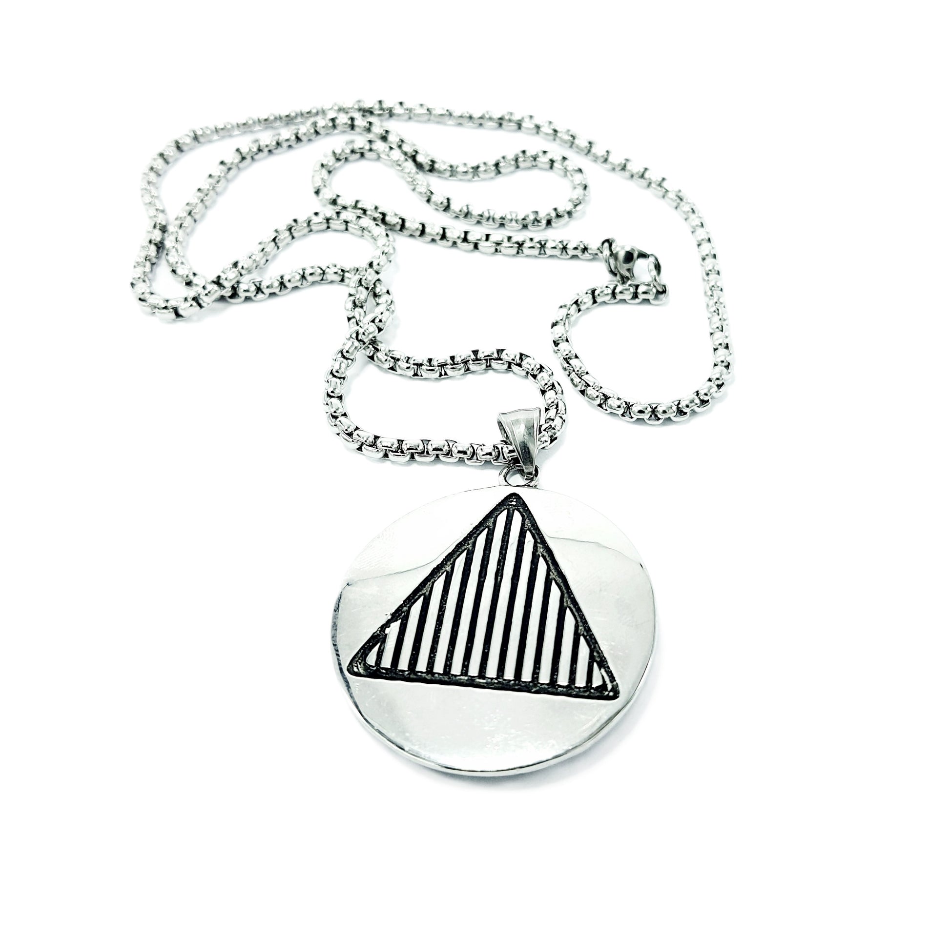 Triangle and HD Double Sided Pendant Mens Stainless Steel Necklace